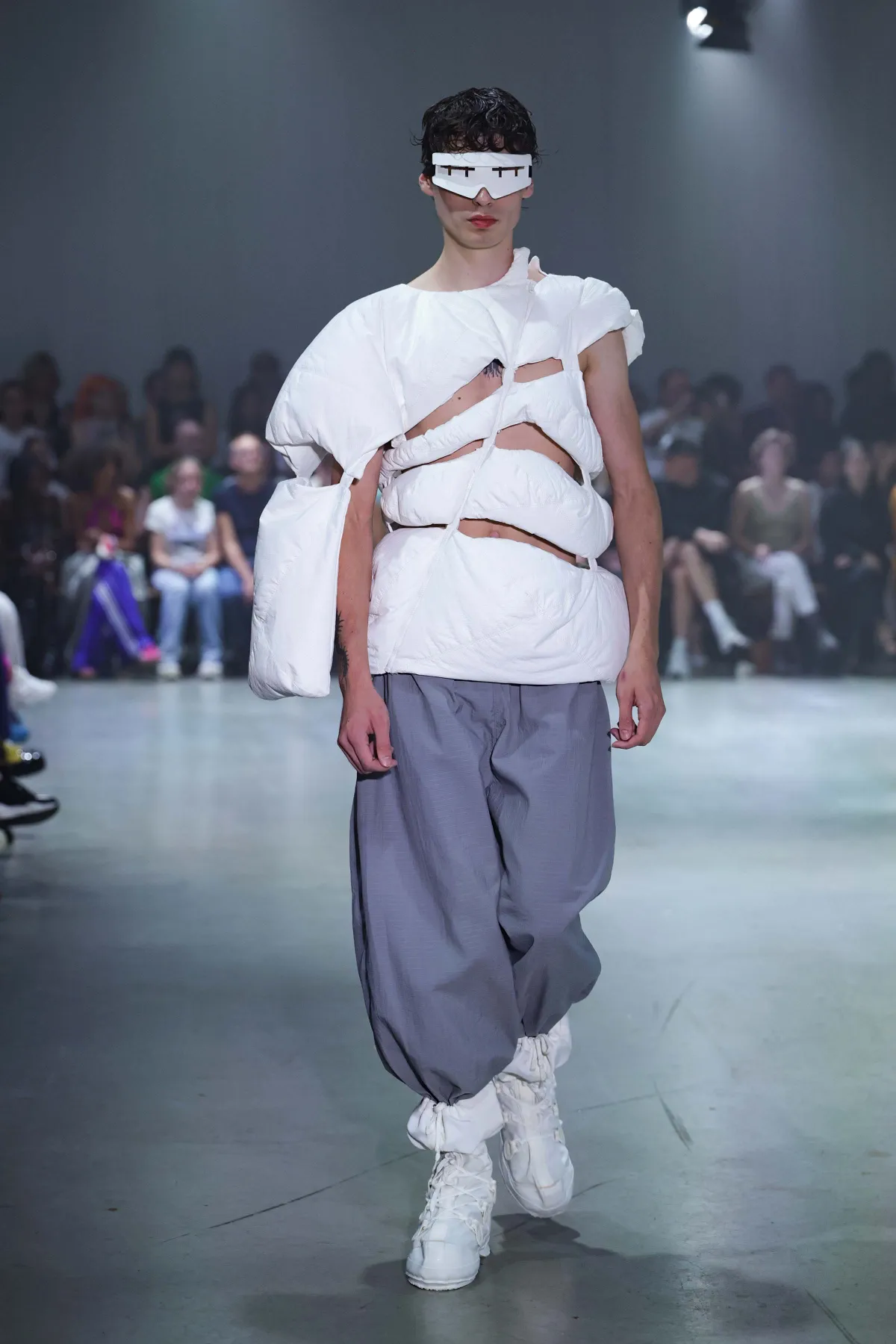Peter shares: “This graduation collection captures the essence of Arctic and Antarctic exploration, fused with the freedom of growing up in the Swiss Alps and the structure of military experience. It embodies the contrasts between vast, open landscapes and disciplined, confined living.”