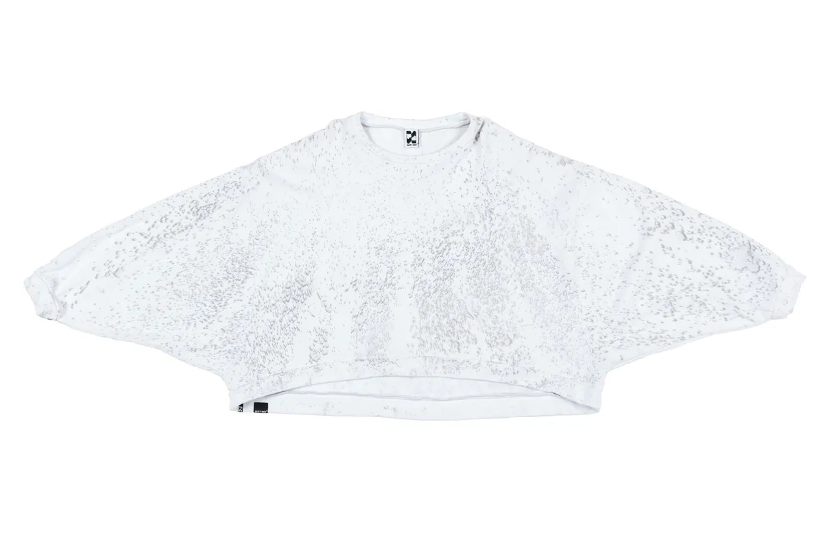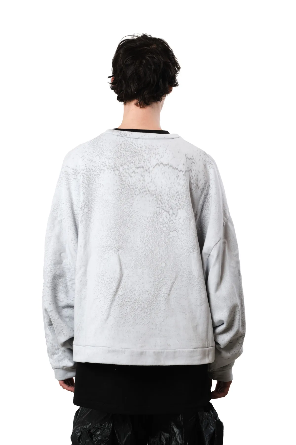 Cropped crewneck sweatshirt featuring a voluminous batwing silhouette and exaggerated dropped shoulders for a bold, architectural fit. Made from soft cotton fleece and finished with a textured dye treatment