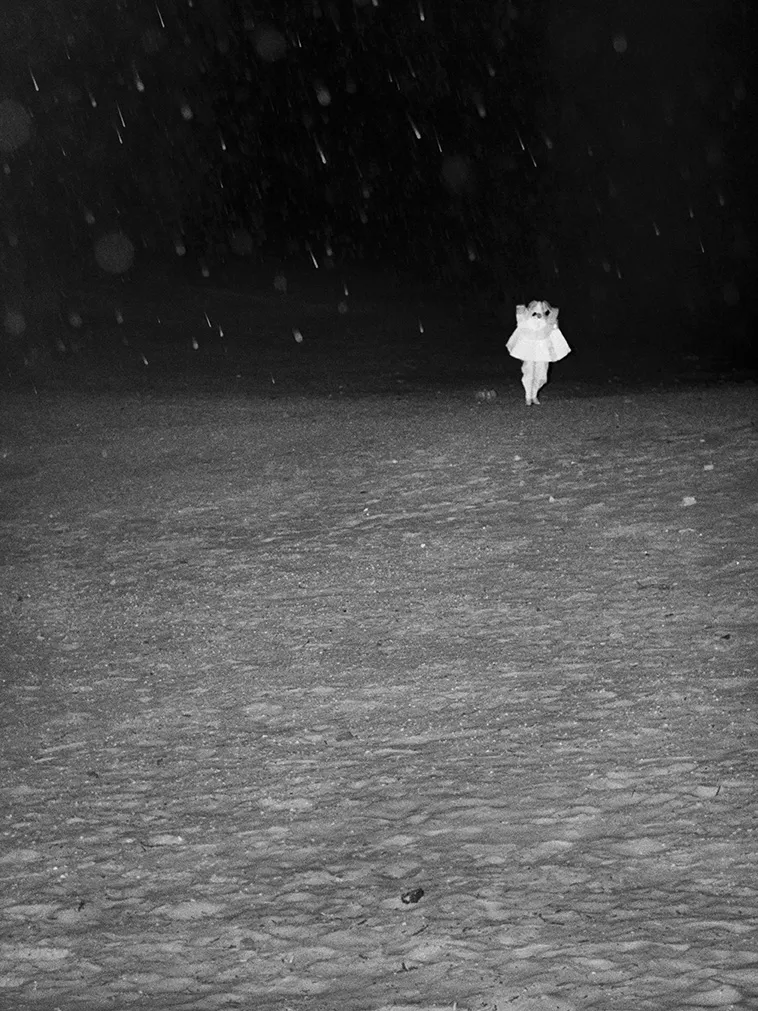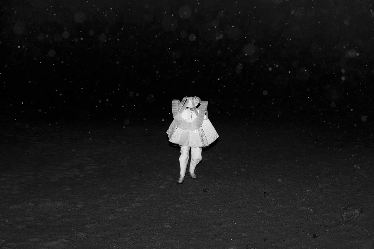 Inspired by space travel, this look serves as a study of isolation, protection, and exploration. Its sculptural form echoes astronaut gear and orbital structures, blending futuristic aesthetics with a sense of survival and wonder beyond Earth.