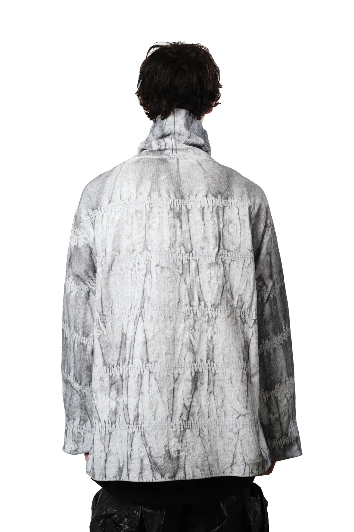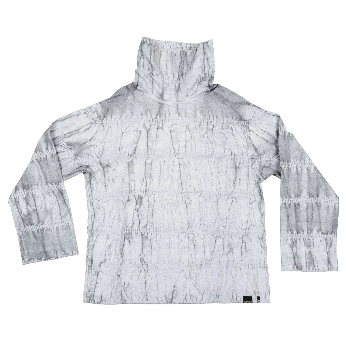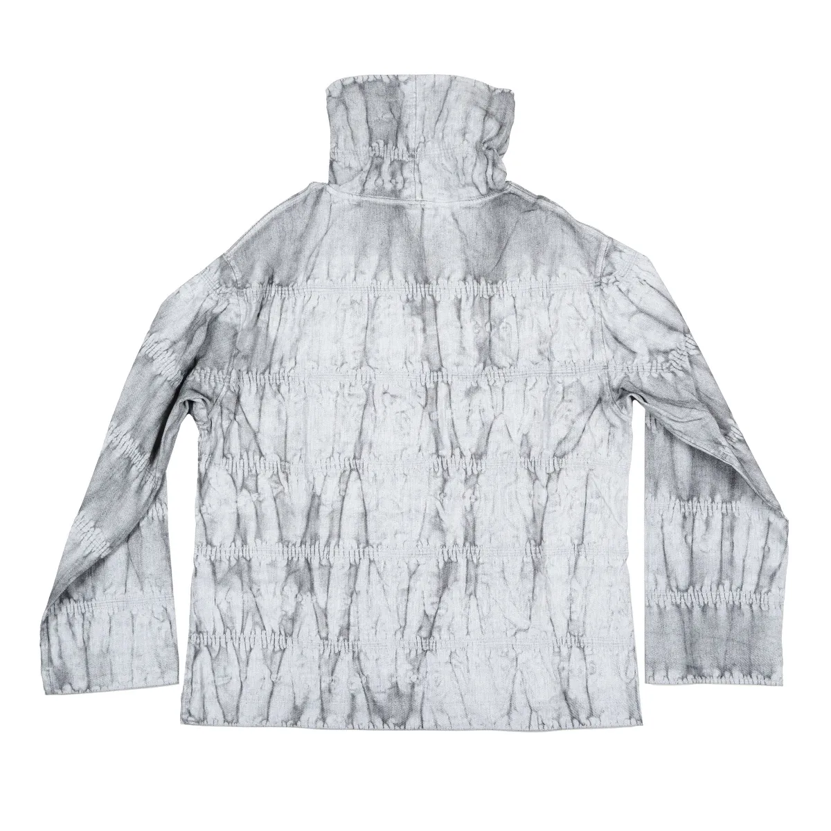 Boxy turtleneck top crafted from coated denim, finished with a custom Kamleika wash that creates a crinkled, weathered texture. Designed with a wide high neck and relaxed fit, this piece combines structure with softness. A distinctive layering garment that stands out through material and form.